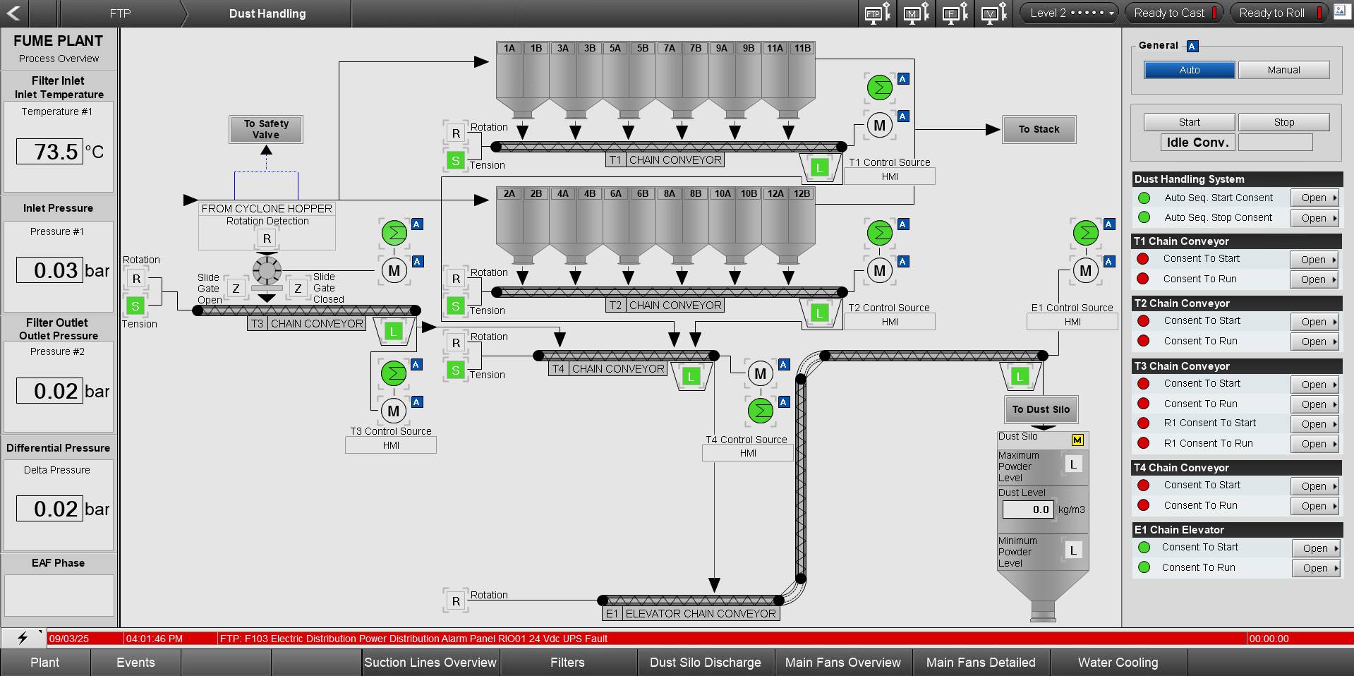 ✅ Automazione dei sistemi di trattamento fumi (FTP): soluzioni per il trattamento dei fumi provenienti dai forni ad arco elettrico (EAF), riducendo le emissioni e migliorando la sostenibilità ambientale degli impianti.
